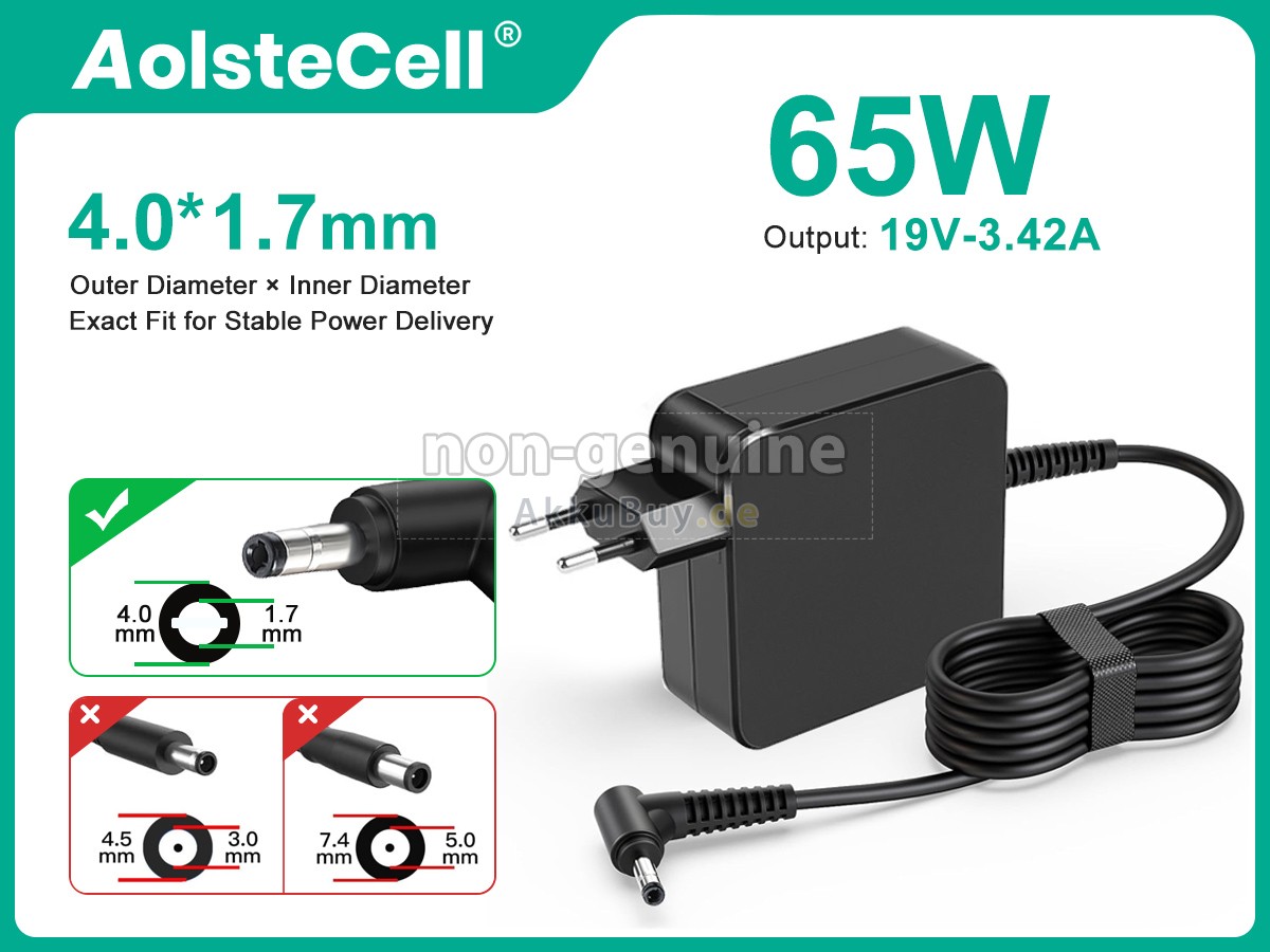 A: Solange der Adapter mit den Parametern Ihres Geräts übereinstimmt, wird er in der Regel keinen Schaden anrichten. Alle unsere Lenovo 65W ROUND TIP(3-PIN) Netzteil werden einer strengen Qualitätskontrolle und Sicherheitsprüfung unterzogen, um eine stabile Ausgangsspannung und Stromstärke zu gewährleisten und den internationalen Sicherheitsstandards zu entsprechen.