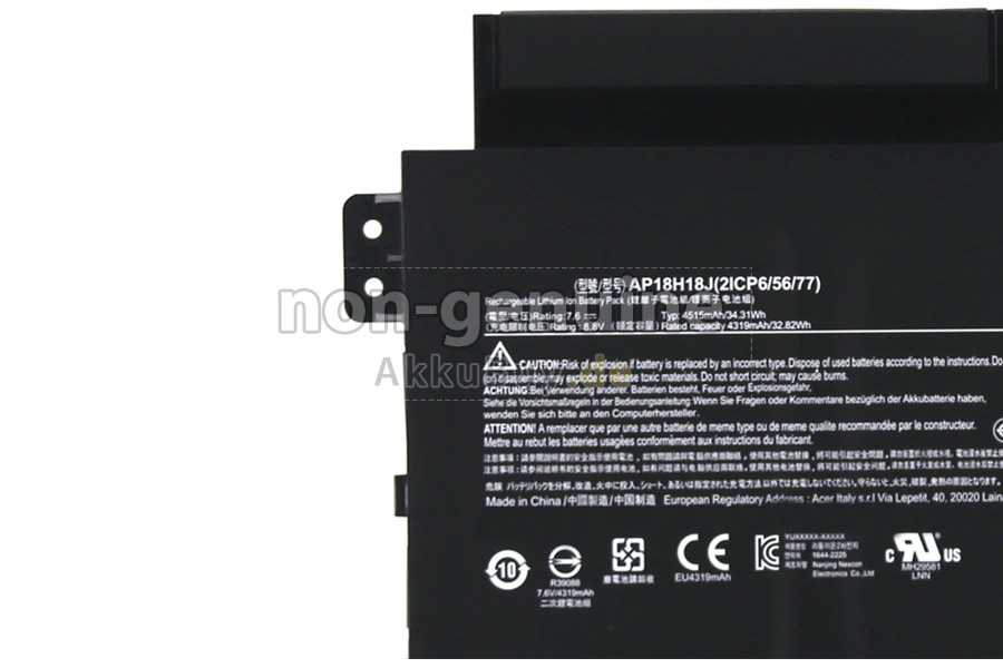 AkkuBuy.de ist Ihre beste Wahl für hochwertige Acer Laptop Akkus! Der brandneue 34.31Wh (2 Zellen) Acer AP18H18J Li-Polymer Ersatzakku wurde mit super hochwertigen Zellen von Samsung, Panasonic und LG hergestellt, um eine optimale Leistung zu gewährleisten. Das Acer AP18H18J Akku-Gehäuse besteht aus nicht brennbarem und haltbarem Kunststoff. Um Beschädigungen während des Transports zu vermeiden, werden sie mit mehreren Schichten dicker Luftpolsterfolie umwickelt und in eine robuste Pappschachtel gepackt.
