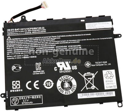 AkkuBuy.de ist Ihre beste Wahl für hochwertige Acer Laptop Akkus! Der brandneue 9800mAh Acer Iconia Tab A510-10S32U Li-Polymer Ersatzakku wurde mit super hochwertigen Zellen von Samsung, Panasonic und LG hergestellt, um eine optimale Leistung zu gewährleisten. Das Acer Iconia Tab A510-10S32U Akku-Gehäuse besteht aus nicht brennbarem und haltbarem Kunststoff. Um Beschädigungen während des Transports zu vermeiden, werden sie mit mehreren Schichten dicker Luftpolsterfolie umwickelt und in eine robuste Pappschachtel gepackt.
