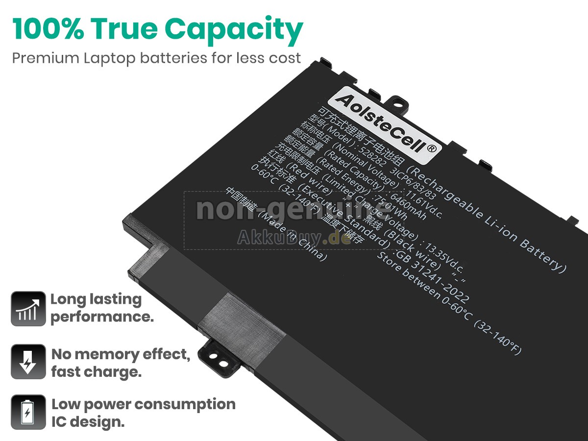 AkkuBuy.de ist Ihre beste Wahl für hochwertige AolsteCell Laptop Akkus! Der brandneue 75.01Wh AolsteCell 528282 Li-Polymer Ersatzakku wurde mit super hochwertigen Zellen von Samsung, Panasonic und LG hergestellt, um eine optimale Leistung zu gewährleisten. Das AolsteCell 528282 Akku-Gehäuse besteht aus nicht brennbarem und haltbarem Kunststoff. Um Beschädigungen während des Transports zu vermeiden, werden sie mit mehreren Schichten dicker Luftpolsterfolie umwickelt und in eine robuste Pappschachtel gepackt.