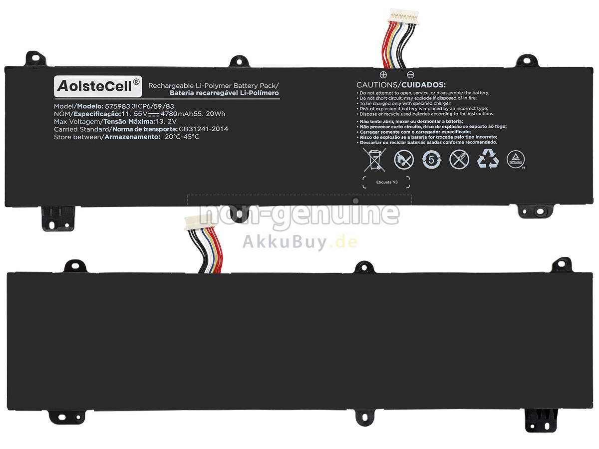 AkkuBuy.de ist Ihre beste Wahl für hochwertige AolsteCell Laptop Akkus! Der brandneue 55.2Wh AolsteCell 575983 Li-Polymer Ersatzakku wurde mit super hochwertigen Zellen von Samsung, Panasonic und LG hergestellt, um eine optimale Leistung zu gewährleisten. Das AolsteCell 575983 Akku-Gehäuse besteht aus nicht brennbarem und haltbarem Kunststoff. Um Beschädigungen während des Transports zu vermeiden, werden sie mit mehreren Schichten dicker Luftpolsterfolie umwickelt und in eine robuste Pappschachtel gepackt.