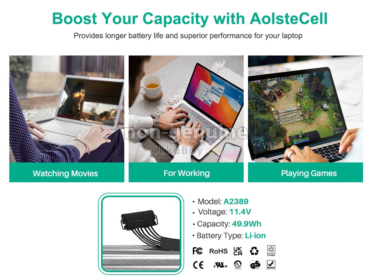 Sicher einkaufen bei uns! Wenn Sie unsere Produkte kaufen, kaufen Sie Vertrauen! Bei allen unseren Akkus für Apple MacBook Air 2020 M1 A2337 EMC 3598 bieten wir Ihnen eine einjährige Garantie und eine 30 tägige Geld-zurück-Garantie, wenn Sie nicht vollständig zufrieden sind. Vor allem sind wir seit vielen Jahren als Großhändler auf Ersatzakkus spezialisiert. Durch den Aufbau einer guten Beziehung zu Herstellern und Logistikzentren können wir hochwertige Akkus für Apple MacBook Air 2020 M1 A2337 EMC 3598 zum wettbewerbsfähigsten Preis anbieten. Wenn Sie irgendwelche Fragen haben, kontaktieren Sie uns bitte frei! Es ist uns eine Freude, Ihnen bei der Lösung von Problemen zu helfen.