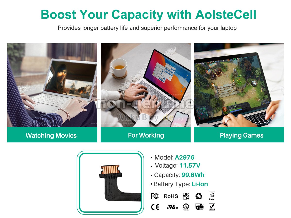 Sicher einkaufen bei uns! Wenn Sie unsere Produkte kaufen, kaufen Sie Vertrauen! Bei allen unseren Akkus für Apple MacBook Pro 16-inch M3 Pro Late 2023 A2991 EMC 8408 bieten wir Ihnen eine einjährige Garantie und eine 30 tägige Geld-zurück-Garantie, wenn Sie nicht vollständig zufrieden sind. Vor allem sind wir seit vielen Jahren als Großhändler auf Ersatzakkus spezialisiert. Durch den Aufbau einer guten Beziehung zu Herstellern und Logistikzentren können wir hochwertige Akkus für Apple MacBook Pro 16-inch M3 Pro Late 2023 A2991 EMC 8408 zum wettbewerbsfähigsten Preis anbieten. Wenn Sie irgendwelche Fragen haben, kontaktieren Sie uns bitte frei! Es ist uns eine Freude, Ihnen bei der Lösung von Problemen zu helfen.