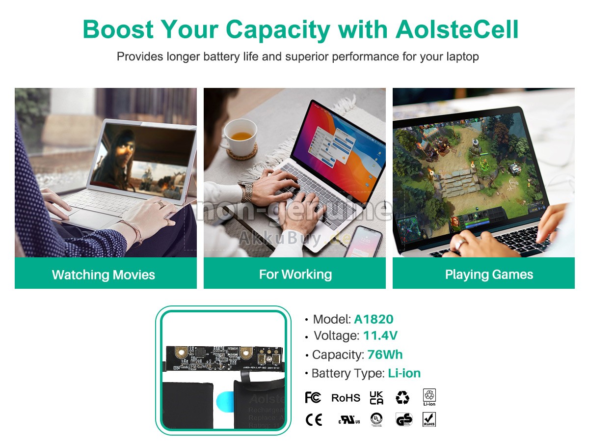 Für alle unseren Ersatzakkus für Apple MacBook Pro Core I7 2.9GHZ 15.4 inch TOUCH A1707(EMC 3072) Laptop bieten wie einjährige Garantie. Die Garantie ist gültig, erst wenn der Käufer die Akku richtig in dem Gerät installiert und die Akku richtig behandelt hat.