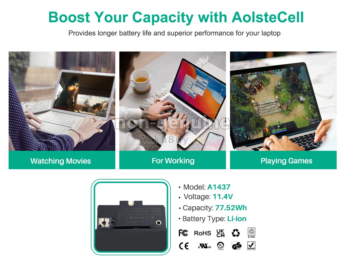Für alle unseren Ersatzakkus für Apple ME662LL/A Laptop bieten wie einjährige Garantie. Die Garantie ist gültig, erst wenn der Käufer die Akku richtig in dem Gerät installiert und die Akku richtig behandelt hat.