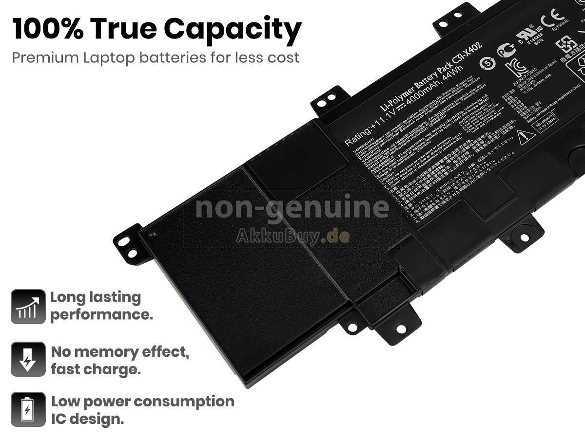 AkkuBuy.de ist Ihre beste Wahl für hochwertige Asus Laptop Akkus! Der brandneue 4000mAh Asus C21-X401 Li-Polymer Ersatzakku wurde mit super hochwertigen Zellen von Samsung, Panasonic und LG hergestellt, um eine optimale Leistung zu gewährleisten. Das Asus C21-X401 Akku-Gehäuse besteht aus nicht brennbarem und haltbarem Kunststoff. Um Beschädigungen während des Transports zu vermeiden, werden sie mit mehreren Schichten dicker Luftpolsterfolie umwickelt und in eine robuste Pappschachtel gepackt.