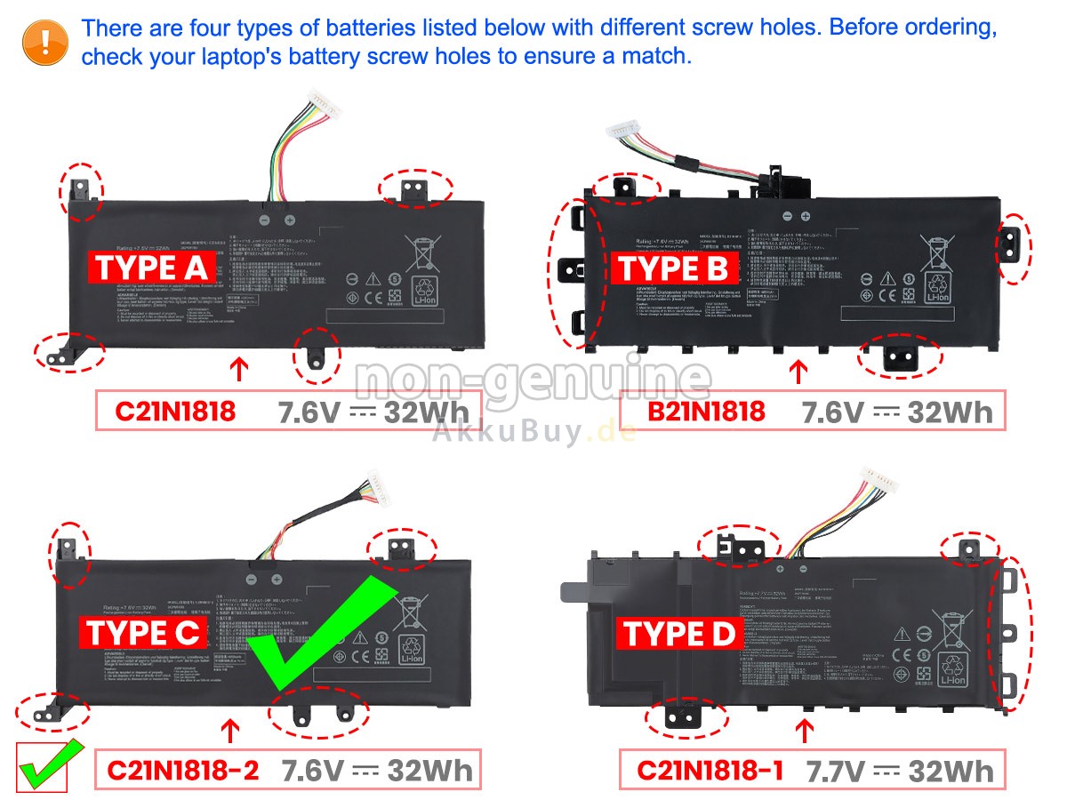 There are 2 types battery, before placing an order please ensure your old battery model name is [C21N1818], not [C21N1818-1] or [C21N1818-2]. - SKUBDE6760