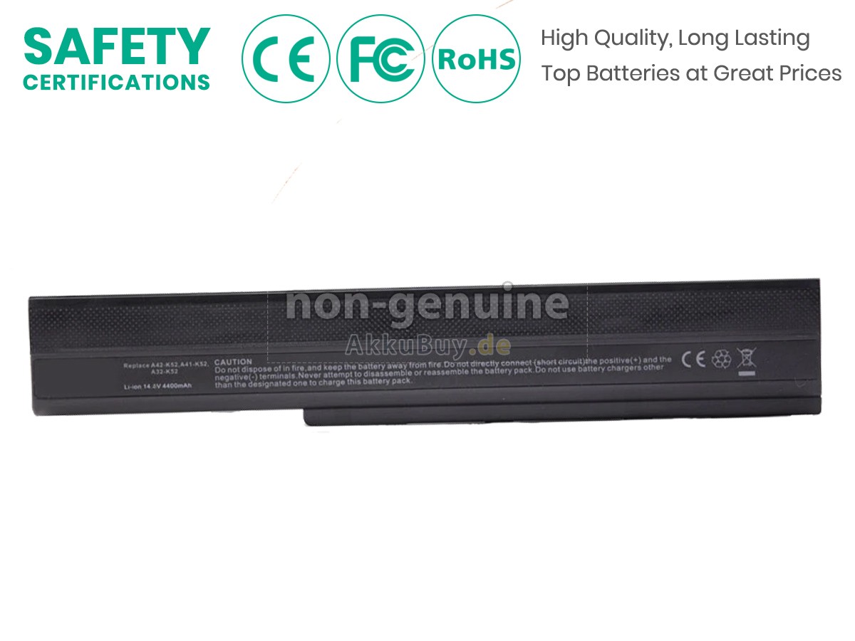 AkkuBuy.de ist Ihre beste Wahl für hochwertige Asus Laptop Akkus! Der brandneue 4400mAh Asus K62J Li-ion Ersatzakku wurde mit super hochwertigen Zellen von Samsung, Panasonic und LG hergestellt, um eine optimale Leistung zu gewährleisten. Das Asus K62J Akku-Gehäuse besteht aus nicht brennbarem und haltbarem Kunststoff. Um Beschädigungen während des Transports zu vermeiden, werden sie mit mehreren Schichten dicker Luftpolsterfolie umwickelt und in eine robuste Pappschachtel gepackt.