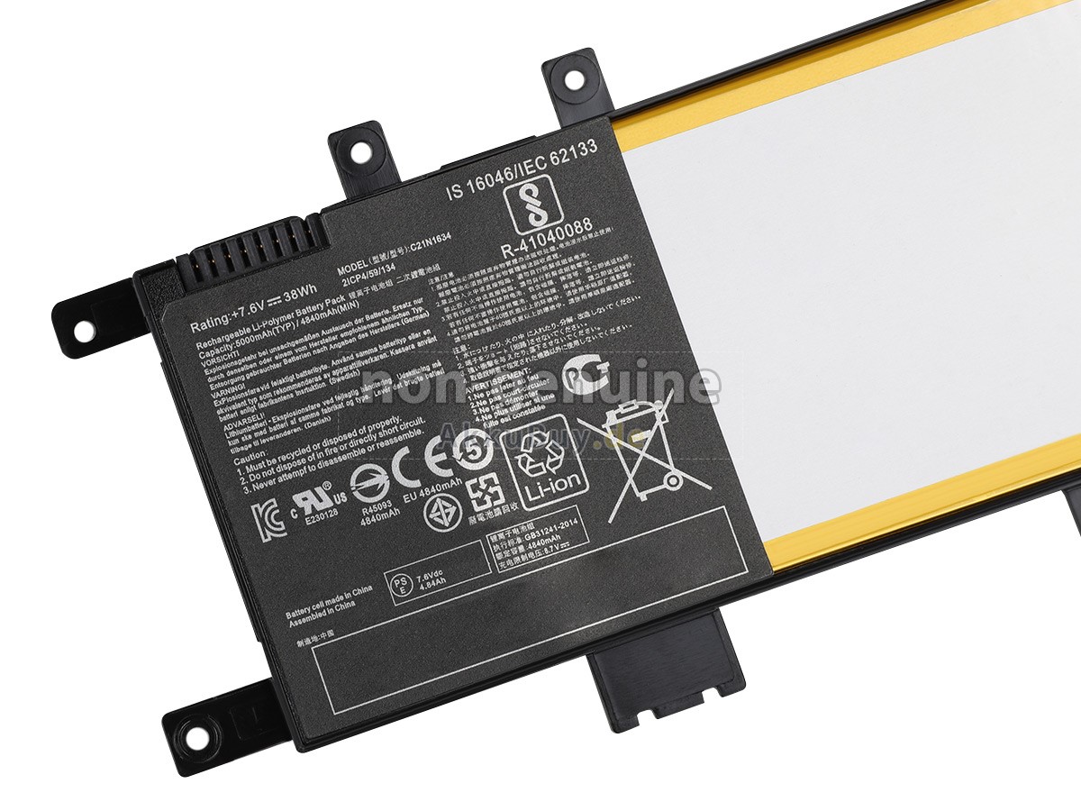 1 Nehmen Sie die Akku heraus, finden Sie die Teilenummer (z. B. „Asus R542UN“), die Akkukapazität und die Akkuspannung der alten Akku auf dem Etikett heraus.