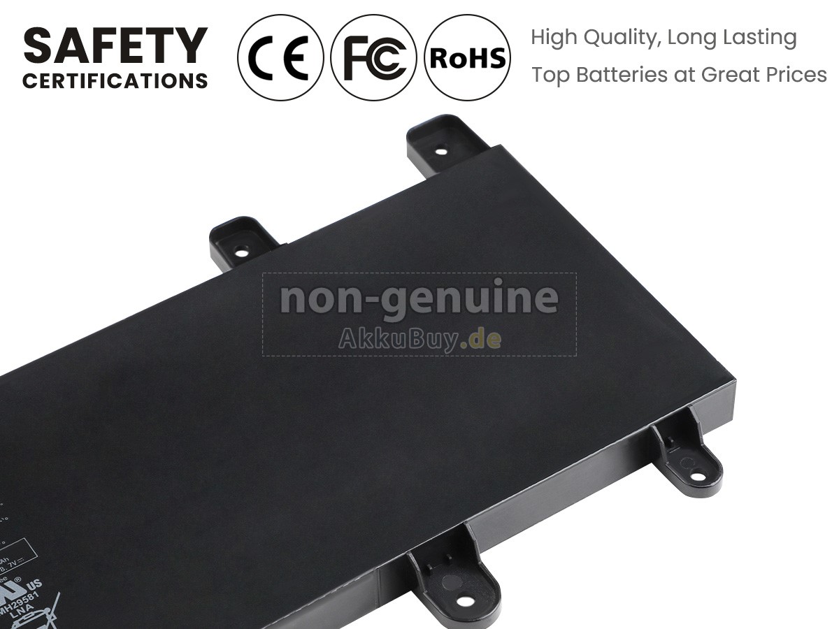 AkkuBuy.de ist Ihre beste Wahl für hochwertige Asus Laptop Akkus! Der brandneue 38Wh Asus X756UF Li-Polymer Ersatzakku wurde mit super hochwertigen Zellen von Samsung, Panasonic und LG hergestellt, um eine optimale Leistung zu gewährleisten. Das Asus X756UF Akku-Gehäuse besteht aus nicht brennbarem und haltbarem Kunststoff. Um Beschädigungen während des Transports zu vermeiden, werden sie mit mehreren Schichten dicker Luftpolsterfolie umwickelt und in eine robuste Pappschachtel gepackt.
