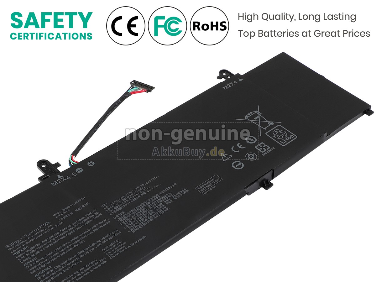 Wir betrachten Sicherheit und Qualität als unsere Pflicht. Jede Ersatzakku für Asus ZenBook 15 UX533FN-A8021T Laptop wurde getestet, um zu beweisen, dass sie die ursprüngliche ZenBook 15 UX533FN-A8021T Akku-Leistung erreichen oder übertreffen kann und 100% kompatibel mit den originalen Spezifikationen des Herstellers ist. Den internationalen Standards entsprechend haben sie eine Reihe von strengen Sicherheitszertifizierungen wie CE, UL, ROHS, ISO9001 / 9002 erhalten. Im Allgemeinen kann diese Asus ZenBook 15 UX533FN-A8021T Akku bis zu mehr als 600 Zyklen geladen / entladen werden.
