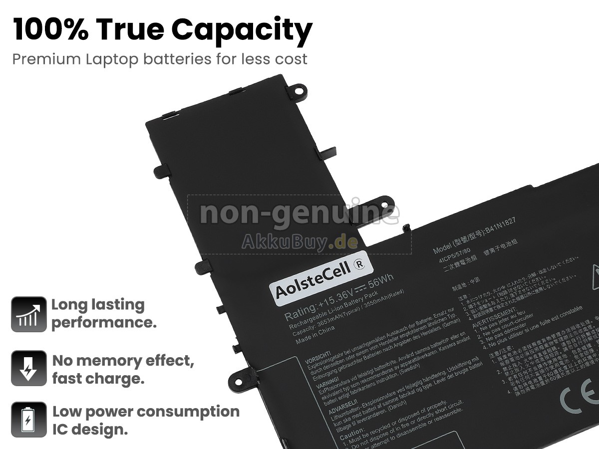 AkkuBuy.de ist Ihre beste Wahl für hochwertige Asus Laptop Akkus! Der brandneue 56Wh Asus ZenBook Flip 15 UX562FA-AC091T Li-Polymer Ersatzakku wurde mit super hochwertigen Zellen von Samsung, Panasonic und LG hergestellt, um eine optimale Leistung zu gewährleisten. Das Asus ZenBook Flip 15 UX562FA-AC091T Akku-Gehäuse besteht aus nicht brennbarem und haltbarem Kunststoff. Um Beschädigungen während des Transports zu vermeiden, werden sie mit mehreren Schichten dicker Luftpolsterfolie umwickelt und in eine robuste Pappschachtel gepackt.