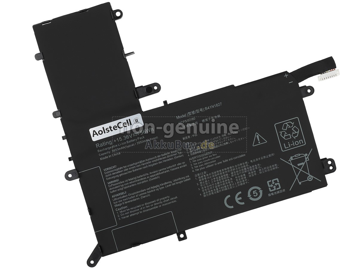 1 Nehmen Sie die Akku heraus, finden Sie die Teilenummer (z. B. „Asus ZenBook Flip 15 UX562FA-AC091T“), die Akkukapazität und die Akkuspannung der alten Akku auf dem Etikett heraus.