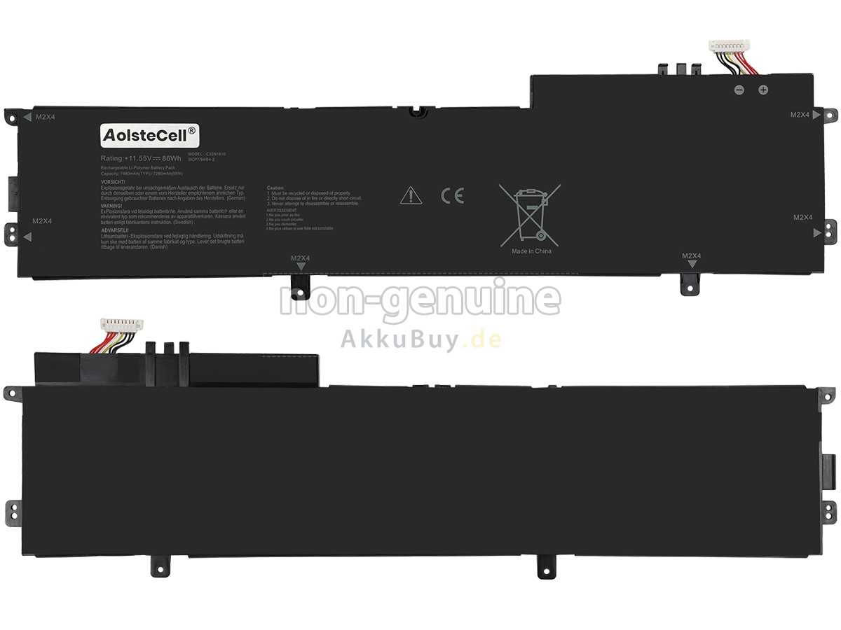 1 Nehmen Sie die Akku heraus, finden Sie die Teilenummer (z. B. „Asus ZenBook Flip 15 UX562FDX-EZ015T“), die Akkukapazität und die Akkuspannung der alten Akku auf dem Etikett heraus.
