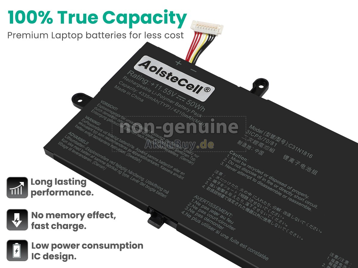AkkuBuy.de ist Ihre beste Wahl für hochwertige Asus Laptop Akkus! Der brandneue 50Wh Asus ZenBook Flip UX362FA-EL119T Li-Polymer Ersatzakku wurde mit super hochwertigen Zellen von Samsung, Panasonic und LG hergestellt, um eine optimale Leistung zu gewährleisten. Das Asus ZenBook Flip UX362FA-EL119T Akku-Gehäuse besteht aus nicht brennbarem und haltbarem Kunststoff. Um Beschädigungen während des Transports zu vermeiden, werden sie mit mehreren Schichten dicker Luftpolsterfolie umwickelt und in eine robuste Pappschachtel gepackt.