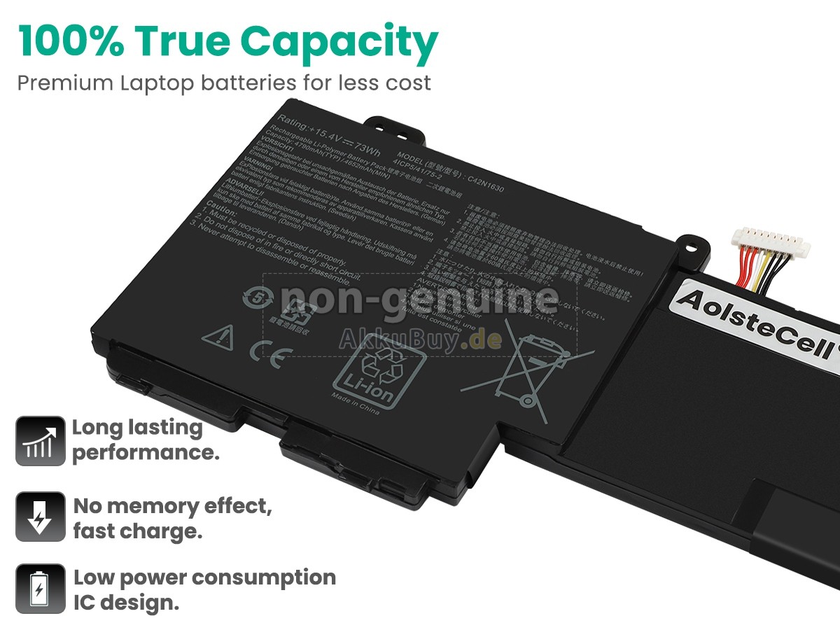 AkkuBuy.de ist Ihre beste Wahl für hochwertige Asus Laptop Akkus! Der brandneue 73Wh Asus ZenBook Pro UX550VE-DB71T Li-Polymer Ersatzakku wurde mit super hochwertigen Zellen von Samsung, Panasonic und LG hergestellt, um eine optimale Leistung zu gewährleisten. Das Asus ZenBook Pro UX550VE-DB71T Akku-Gehäuse besteht aus nicht brennbarem und haltbarem Kunststoff. Um Beschädigungen während des Transports zu vermeiden, werden sie mit mehreren Schichten dicker Luftpolsterfolie umwickelt und in eine robuste Pappschachtel gepackt.