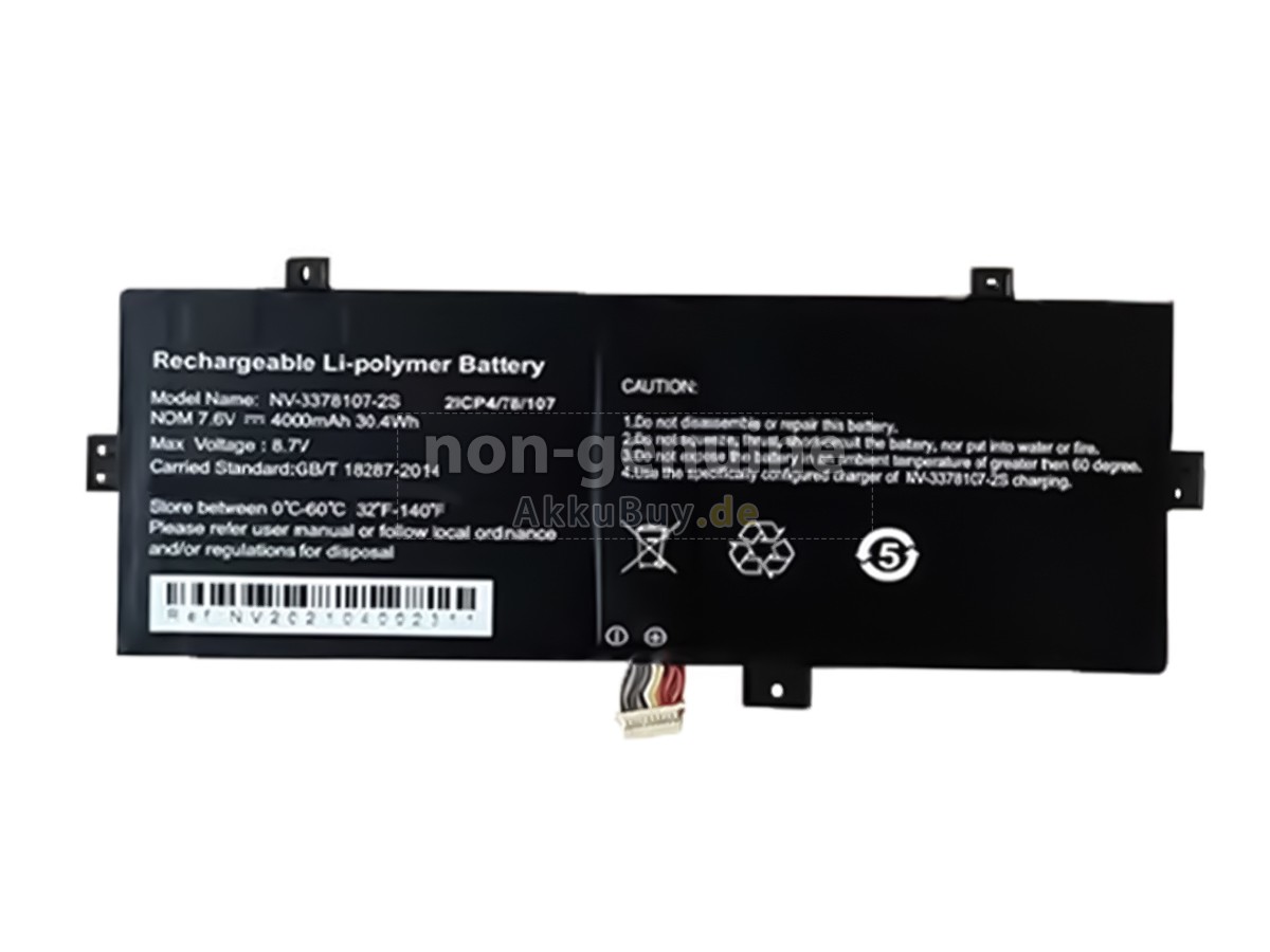 1 Nehmen Sie die Akku heraus, finden Sie die Teilenummer (z. B. „AXIOO NV-3378107-2S“), die Akkukapazität und die Akkuspannung der alten Akku auf dem Etikett heraus.