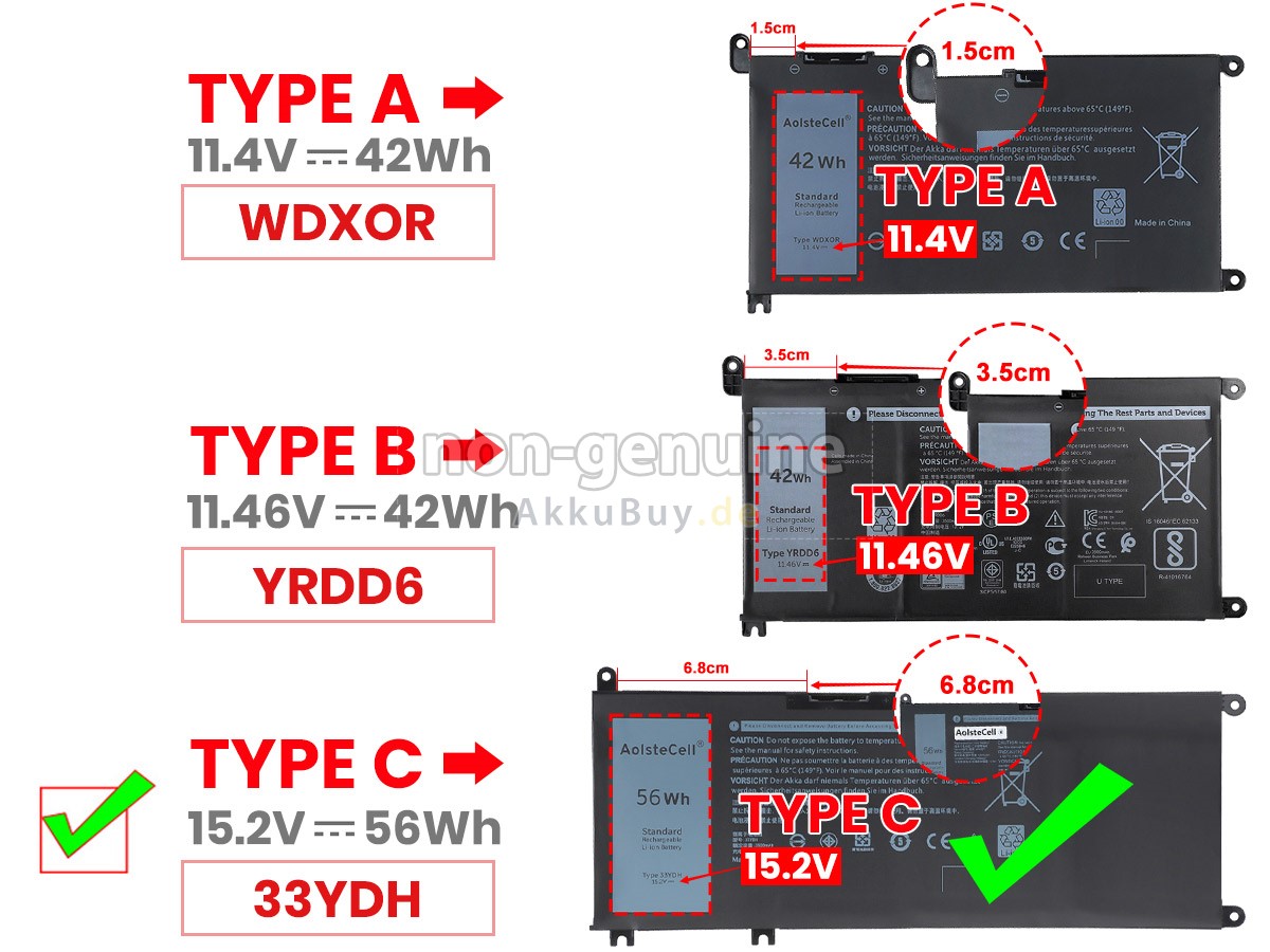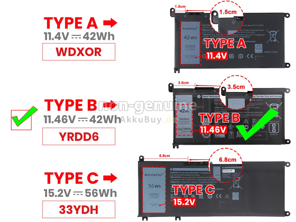 Sicher einkaufen bei uns! Wenn Sie unsere Produkte kaufen, kaufen Sie Vertrauen! Bei allen unseren Akkus für Dell Inspiron 15 7569 2-IN-1 bieten wir Ihnen eine einjährige Garantie und eine 30 tägige Geld-zurück-Garantie, wenn Sie nicht vollständig zufrieden sind. Vor allem sind wir seit vielen Jahren als Großhändler auf Ersatzakkus spezialisiert. Durch den Aufbau einer guten Beziehung zu Herstellern und Logistikzentren können wir hochwertige Akkus für Dell Inspiron 15 7569 2-IN-1 zum wettbewerbsfähigsten Preis anbieten. Wenn Sie irgendwelche Fragen haben, kontaktieren Sie uns bitte frei! Es ist uns eine Freude, Ihnen bei der Lösung von Problemen zu helfen.