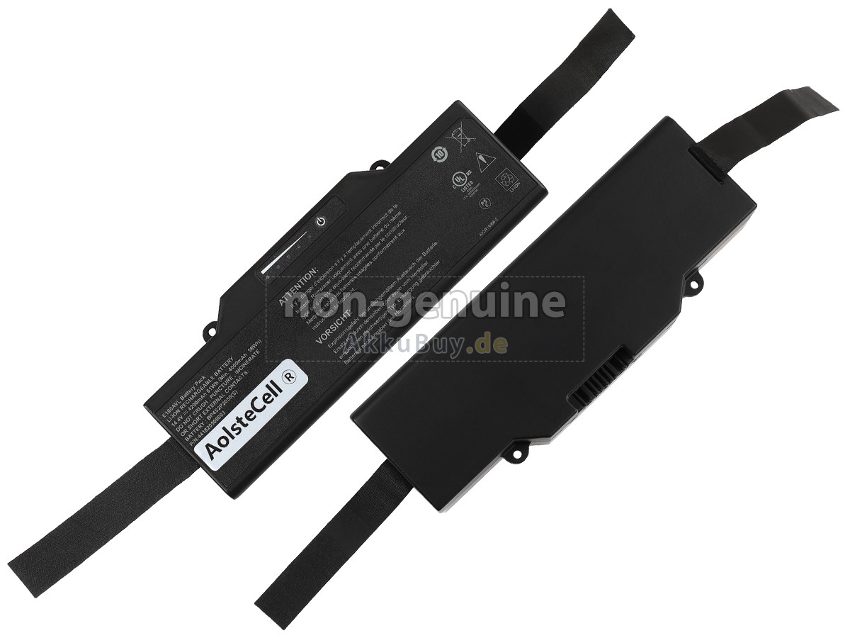 1 Nehmen Sie die Akku heraus, finden Sie die Teilenummer (z. B. „Getac BP4S2P2050(S)“), die Akkukapazität und die Akkuspannung der alten Akku auf dem Etikett heraus.