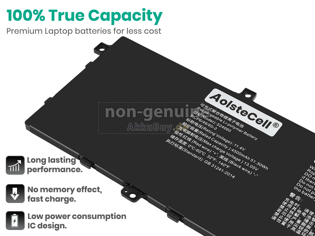 4 Sie können eine Akku mit höherer Kapazität für Ihren Laptop auswählen. Bitte beachten Sie, dass der Akku mit höherer Kapazität circa 1 Zoll von der Unterseite Ihres Laptops hervorsticht.