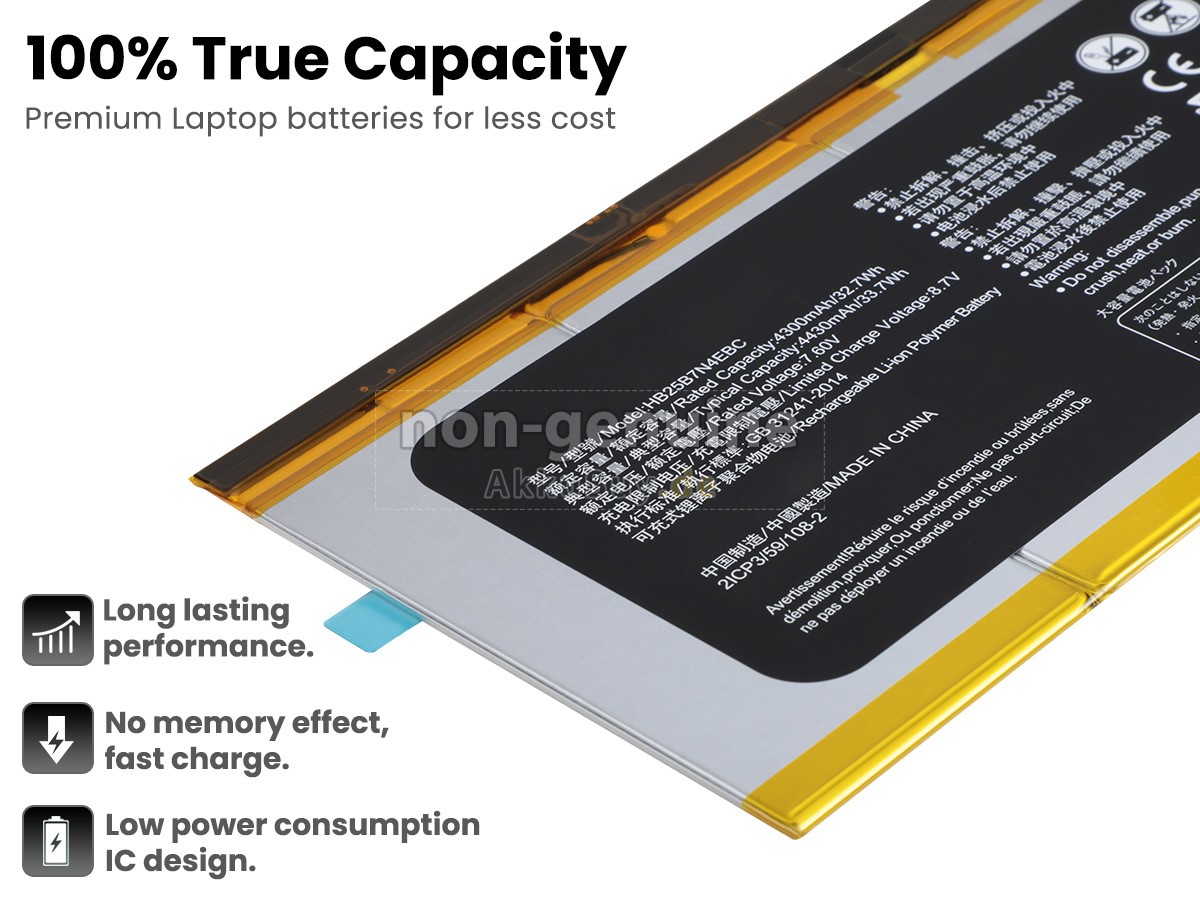 1 Nehmen Sie die Akku heraus, finden Sie die Teilenummer (z. B. „Huawei MATEBOOK M5-6Y54“), die Akkukapazität und die Akkuspannung der alten Akku auf dem Etikett heraus.