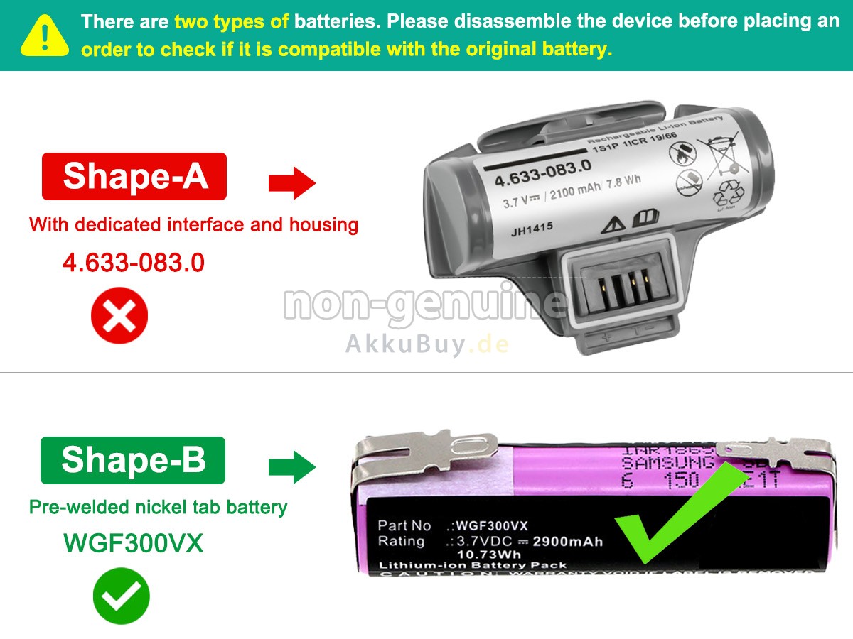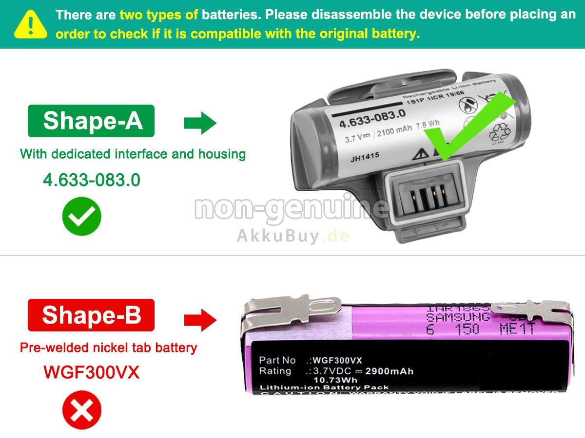 3 Überprüfen Sie, ob die Spannung (Nennspannung) mit der alten übereinstimmt. Für weitere Details klicken Sie bitte auf „Wie finde ich eine richtige Akku?“