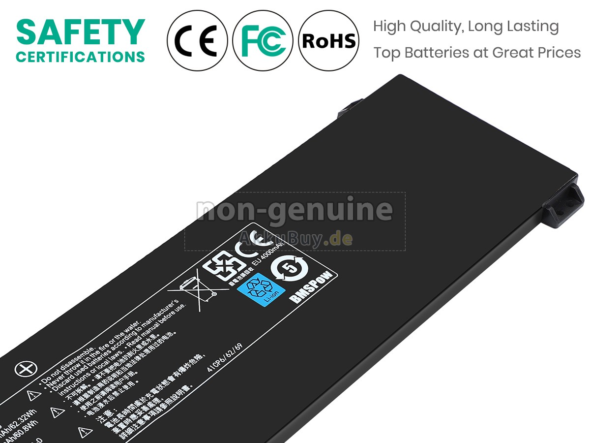 AkkuBuy.de ist Ihre beste Wahl für hochwertige Mechrevo Laptop Akkus! Der brandneue 62.32Wh Mechrevo BATRGKIDY3-4102 Li-Polymer Ersatzakku wurde mit super hochwertigen Zellen von Samsung, Panasonic und LG hergestellt, um eine optimale Leistung zu gewährleisten. Das Mechrevo BATRGKIDY3-4102 Akku-Gehäuse besteht aus nicht brennbarem und haltbarem Kunststoff. Um Beschädigungen während des Transports zu vermeiden, werden sie mit mehreren Schichten dicker Luftpolsterfolie umwickelt und in eine robuste Pappschachtel gepackt.