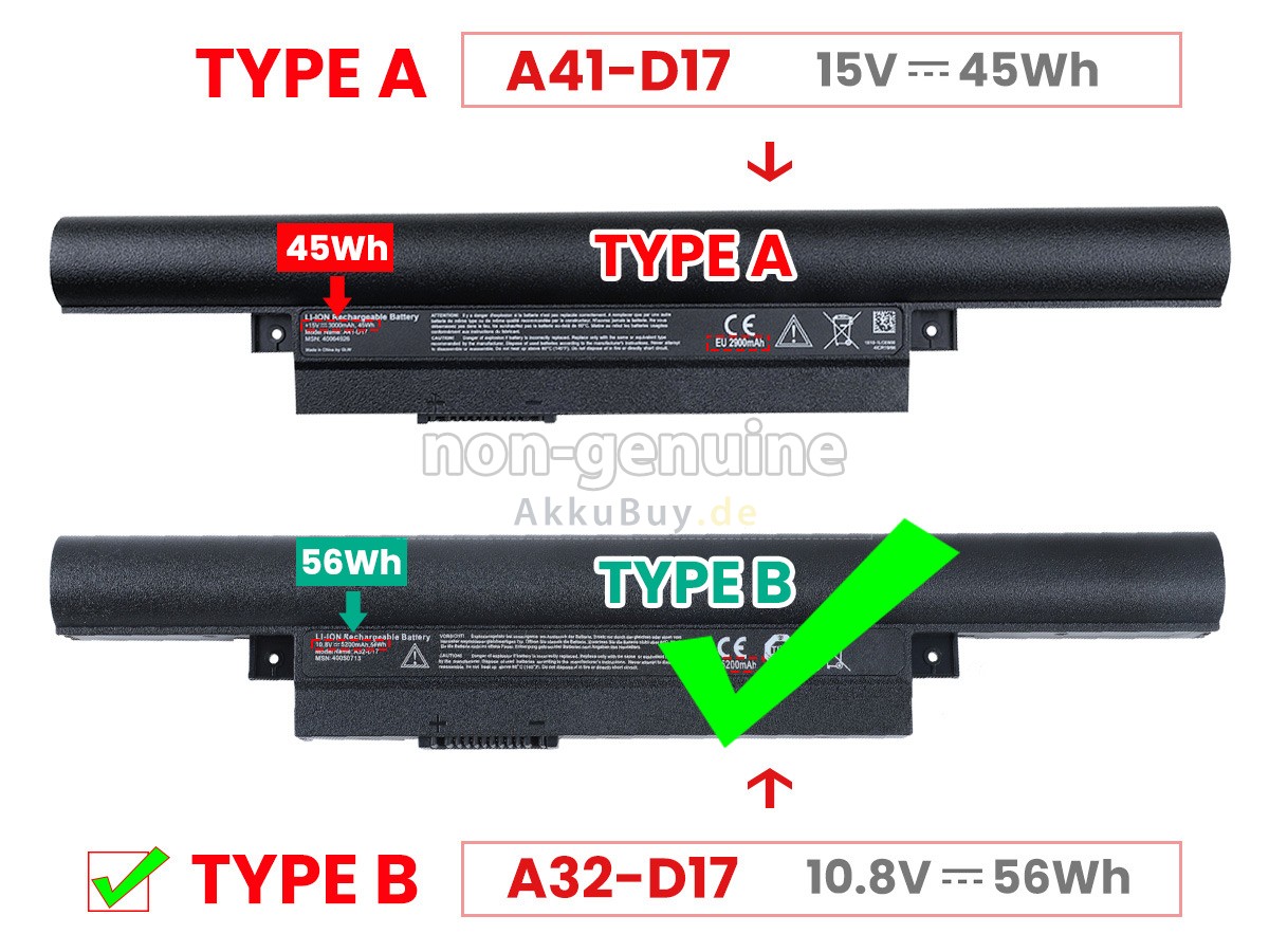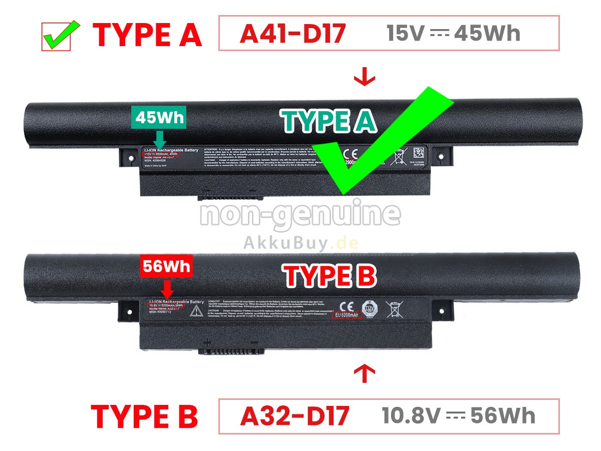 This battery can replacement for the 15V/45Wh battery. IF your laptop model is Medion Erazer P7643, Erazer P7644,Erazer P7652,Akoya E7416,Akoya E7424 please do not order this 6 cells battery. - SKUBDE2137