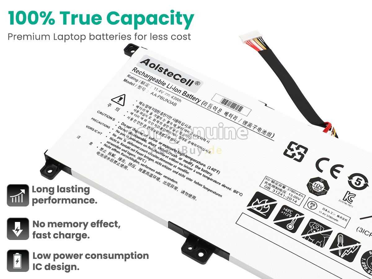 AkkuBuy.de ist Ihre beste Wahl für hochwertige Samsung Laptop Akkus! Der brandneue 43Wh Samsung 8500GM-X0D Li-Polymer Ersatzakku wurde mit super hochwertigen Zellen von Samsung, Panasonic und LG hergestellt, um eine optimale Leistung zu gewährleisten. Das Samsung 8500GM-X0D Akku-Gehäuse besteht aus nicht brennbarem und haltbarem Kunststoff. Um Beschädigungen während des Transports zu vermeiden, werden sie mit mehreren Schichten dicker Luftpolsterfolie umwickelt und in eine robuste Pappschachtel gepackt.