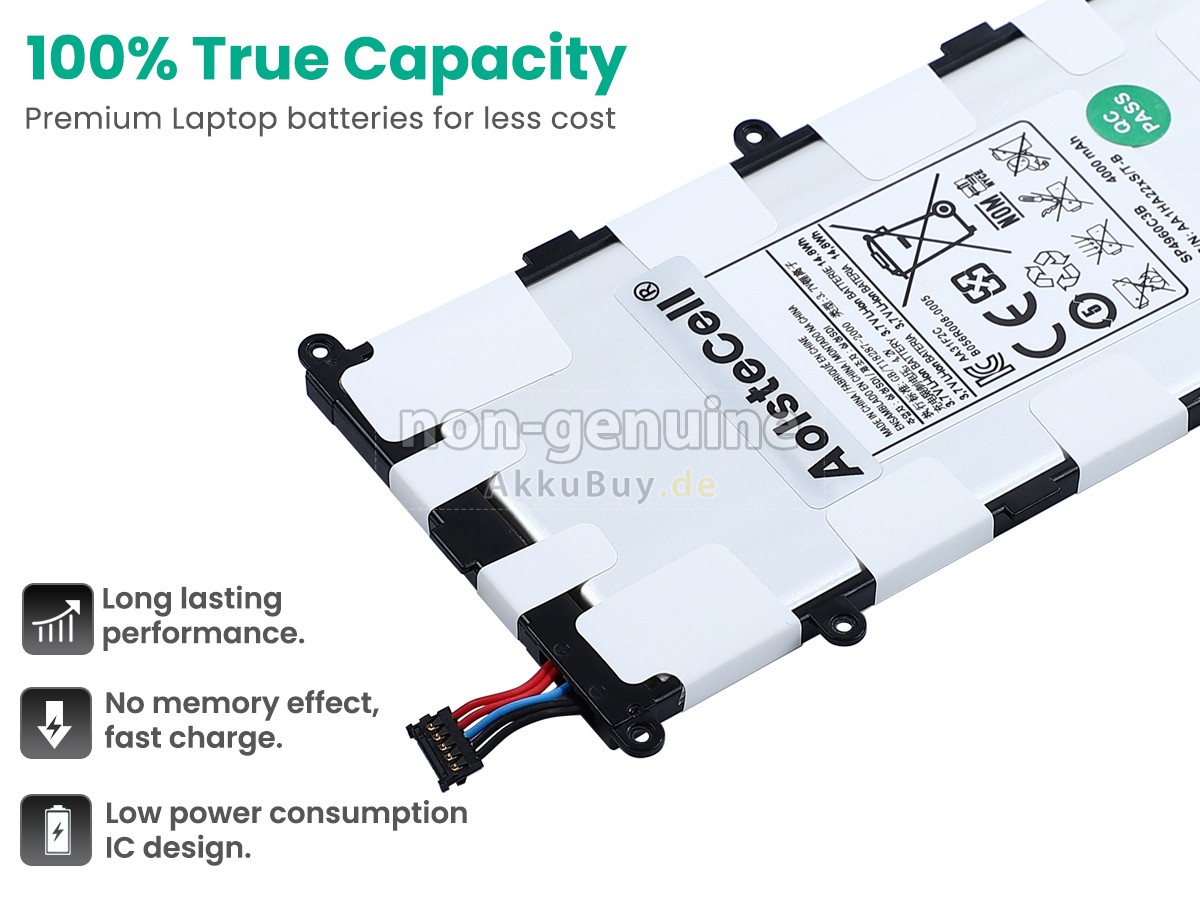 AkkuBuy.de ist Ihre beste Wahl für hochwertige Samsung Laptop Akkus! Der brandneue 4000mAh Samsung GT-P6208 Li-Polymer Ersatzakku wurde mit super hochwertigen Zellen von Samsung, Panasonic und LG hergestellt, um eine optimale Leistung zu gewährleisten. Das Samsung GT-P6208 Akku-Gehäuse besteht aus nicht brennbarem und haltbarem Kunststoff. Um Beschädigungen während des Transports zu vermeiden, werden sie mit mehreren Schichten dicker Luftpolsterfolie umwickelt und in eine robuste Pappschachtel gepackt.