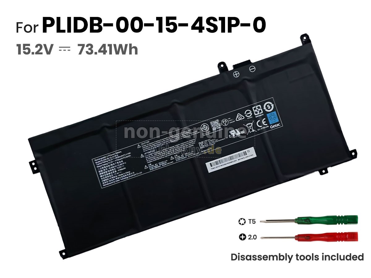 1 Nehmen Sie die Akku heraus, finden Sie die Teilenummer (z. B. „Schenker PLIDB-00-15-4S1P-0“), die Akkukapazität und die Akkuspannung der alten Akku auf dem Etikett heraus.