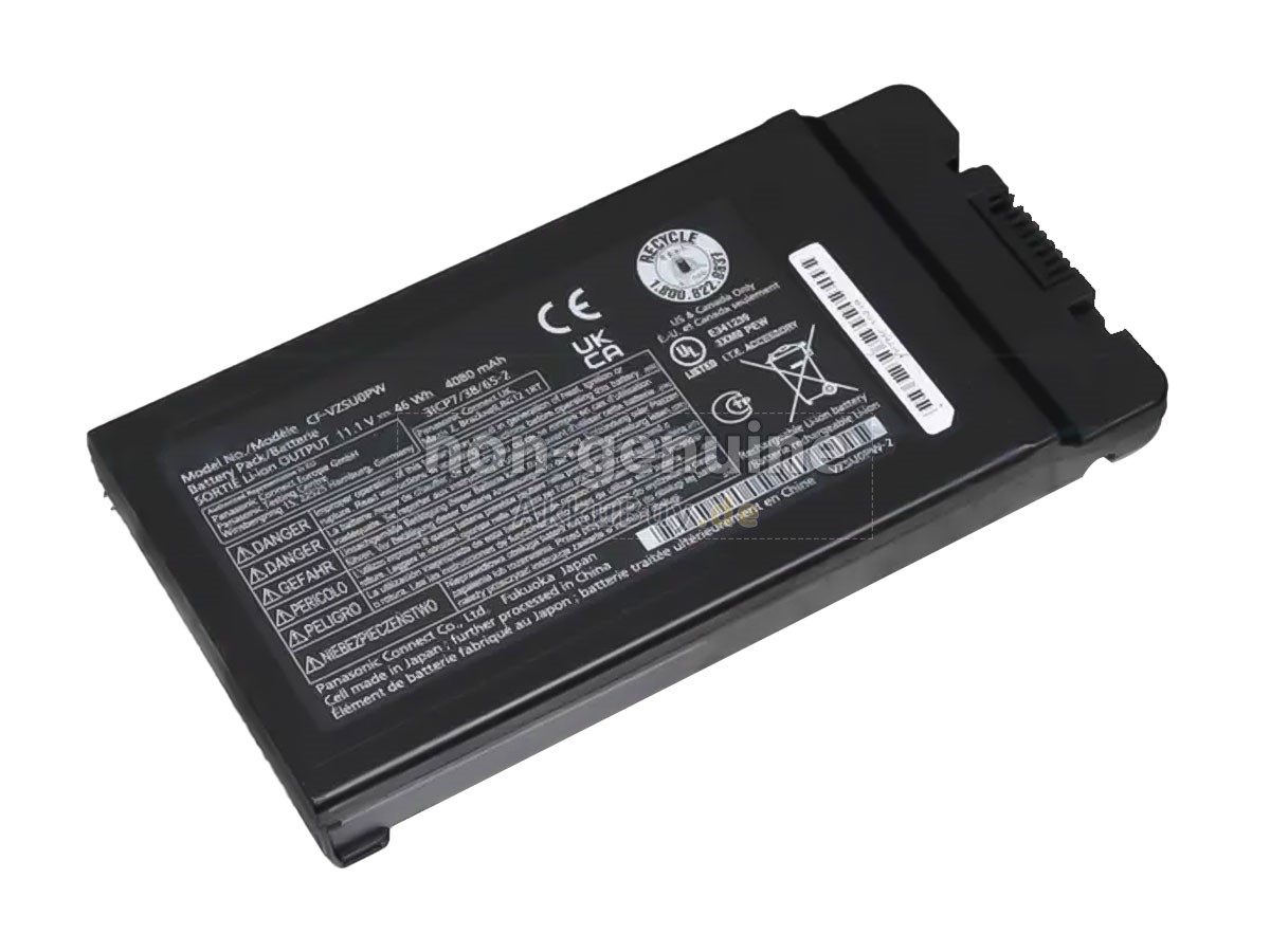 1 Nehmen Sie die Akku heraus, finden Sie die Teilenummer (z. B. „Sony CF-VZSUOPW“), die Akkukapazität und die Akkuspannung der alten Akku auf dem Etikett heraus.