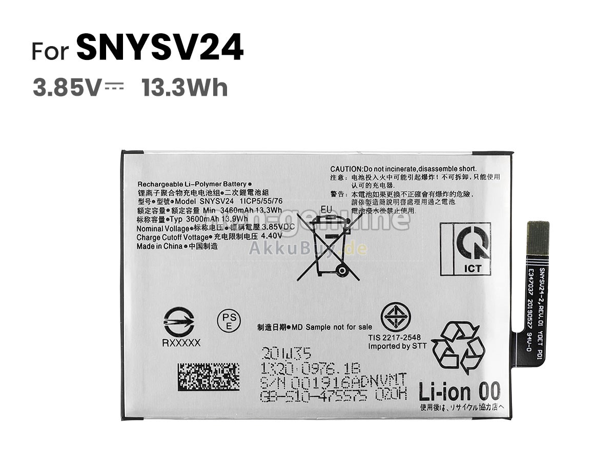 AkkuBuy.de ist Ihre beste Wahl für hochwertige Sony Akkus! Der brandneue 13.3Wh (1 Zellen) Sony SNYSV24 Li-Polymer Ersatzakku wurde mit super hochwertigen Zellen von Samsung, Panasonic und LG hergestellt, um eine optimale Leistung zu gewährleisten. Das Sony SNYSV24 Akku-Gehäuse besteht aus nicht brennbarem und haltbarem Kunststoff. Um Beschädigungen während des Transports zu vermeiden, werden sie mit mehreren Schichten dicker Luftpolsterfolie umwickelt und in eine robuste Pappschachtel gepackt.