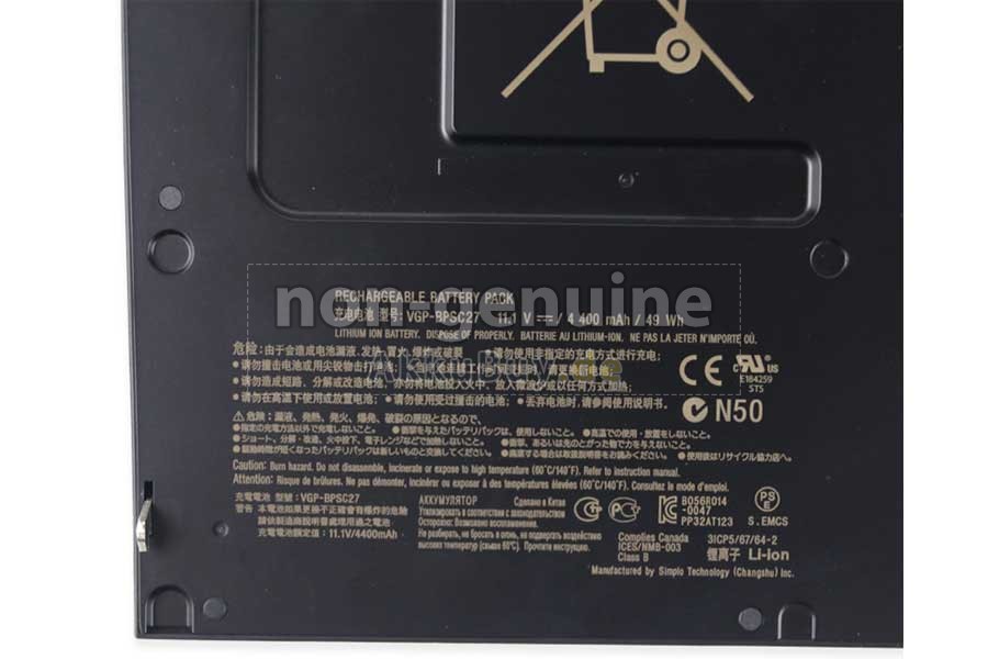 1 Nehmen Sie die Akku heraus, finden Sie die Teilenummer (z. B. „Sony VAIO VPCZ23S9E/B“), die Akkukapazität und die Akkuspannung der alten Akku auf dem Etikett heraus.