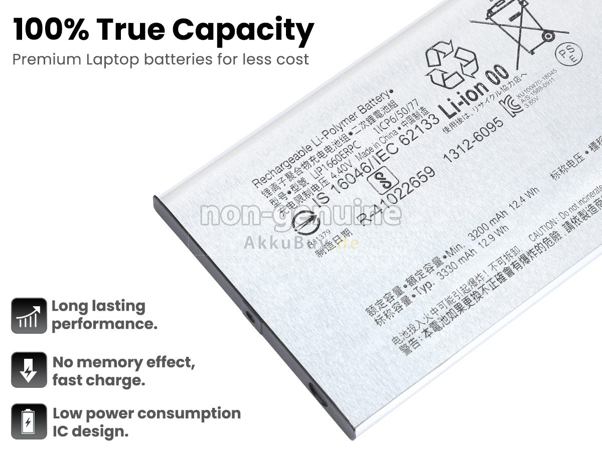 AkkuBuy.de ist Ihre beste Wahl für hochwertige Sony Akkus! Der brandneue 12.4Wh (1 Zellen) Sony XPERIA XZ3 SOV39 Li-Polymer Ersatzakku wurde mit super hochwertigen Zellen von Samsung, Panasonic und LG hergestellt, um eine optimale Leistung zu gewährleisten. Das Sony XPERIA XZ3 SOV39 Akku-Gehäuse besteht aus nicht brennbarem und haltbarem Kunststoff. Um Beschädigungen während des Transports zu vermeiden, werden sie mit mehreren Schichten dicker Luftpolsterfolie umwickelt und in eine robuste Pappschachtel gepackt.