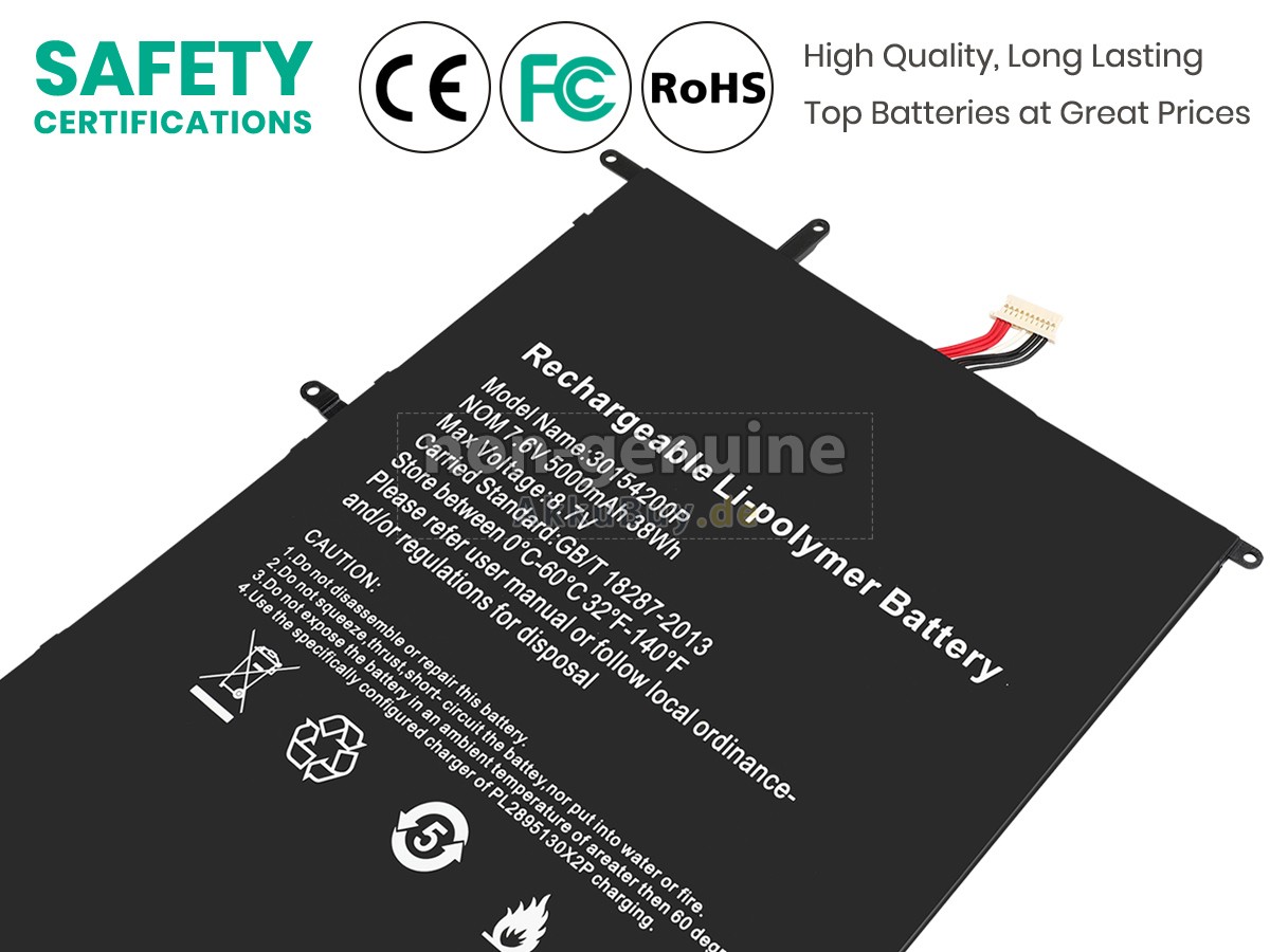 Sicher einkaufen bei uns! Wenn Sie unsere Produkte kaufen, kaufen Sie Vertrauen! Bei allen unseren Akkus für Teclast 30154200P bieten wir Ihnen eine einjährige Garantie und eine 30 tägige Geld-zurück-Garantie, wenn Sie nicht vollständig zufrieden sind. Vor allem sind wir seit vielen Jahren als Großhändler auf Ersatzakkus spezialisiert. Durch den Aufbau einer guten Beziehung zu Herstellern und Logistikzentren können wir hochwertige Akkus für Teclast 30154200P zum wettbewerbsfähigsten Preis anbieten. Wenn Sie irgendwelche Fragen haben, kontaktieren Sie uns bitte frei! Es ist uns eine Freude, Ihnen bei der Lösung von Problemen zu helfen.