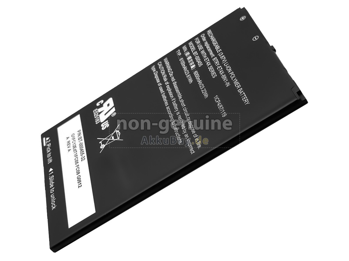 1 Nehmen Sie die Akku heraus, finden Sie die Teilenummer (z. B. „Zebra BTRY-ET4X-8IN1-01“), die Akkukapazität und die Akkuspannung der alten Akku auf dem Etikett heraus.